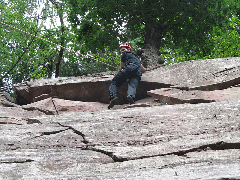 Pünktlich zu Kursbeginn begann die Sonne zu strahlen, so dass der Kletterkurs im Steinbruch Kentheim stattfinden konnte. Klettercoach Gerhard, staatl. geprüfter Berg- und Skiführer, erklärte zuerst, wie man einen Klettergurt richtig anlegt und auf was es alles bei der Klettertechnik so ankommt.