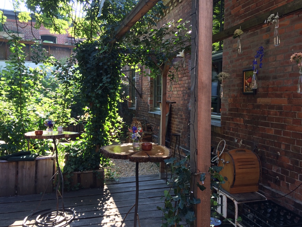 Nach einem vitaminreichen Frühstück liefen wir die kurze Strecke zum Veranstaltungsort. Dieser befand sich wortwörtlich im letzten Hinterhof eines stark renovierungsbedürftigen Hauses. Anfangs leicht irritiert, entpuppte sich die darin befindliche Schmiede mit verwunschenem Innenhof zu einem der coolsten Veranstaltungsorten, die ich je gesehen habe. Die schönsten Diamanten liegen eben im Verborgenen ;-). Auf buntgemischten, jedoch ordentlich aufgestellten Stühlen nahmen wir Platz, bevor es losging.