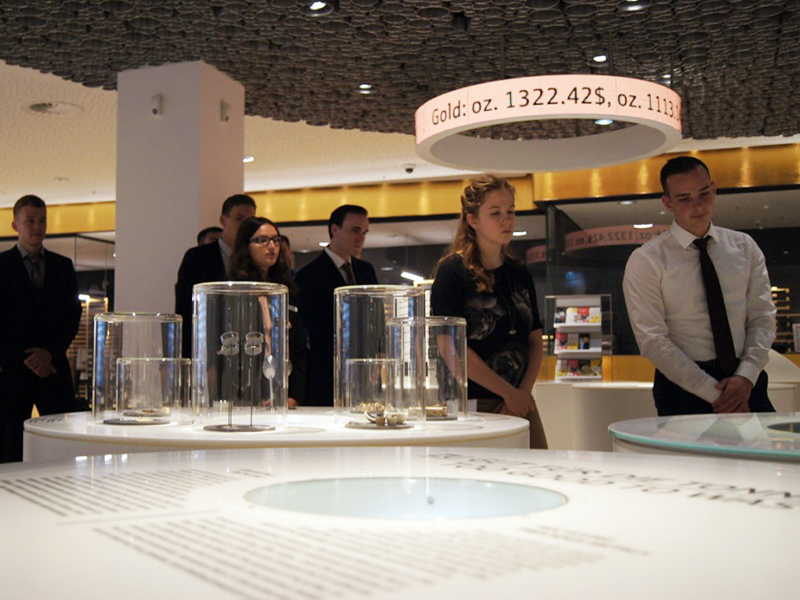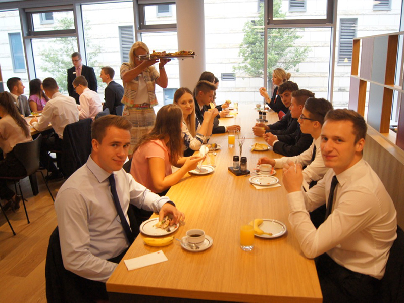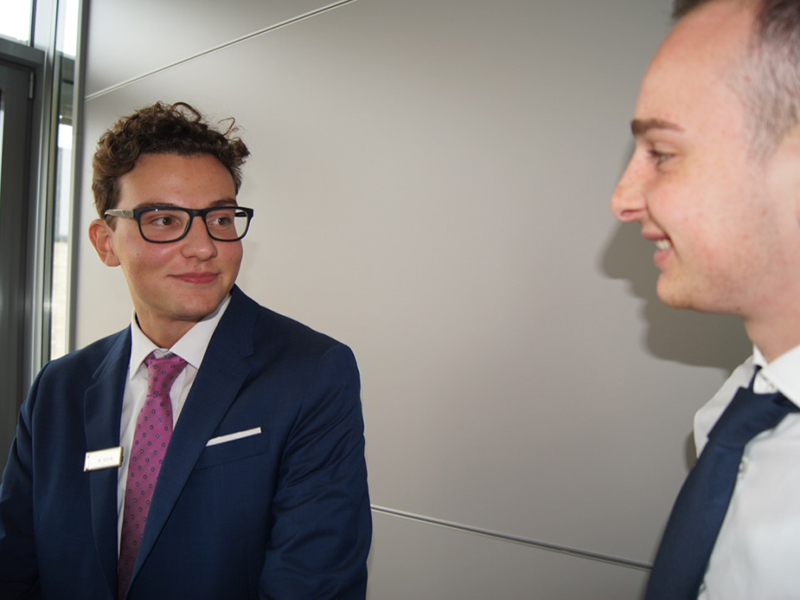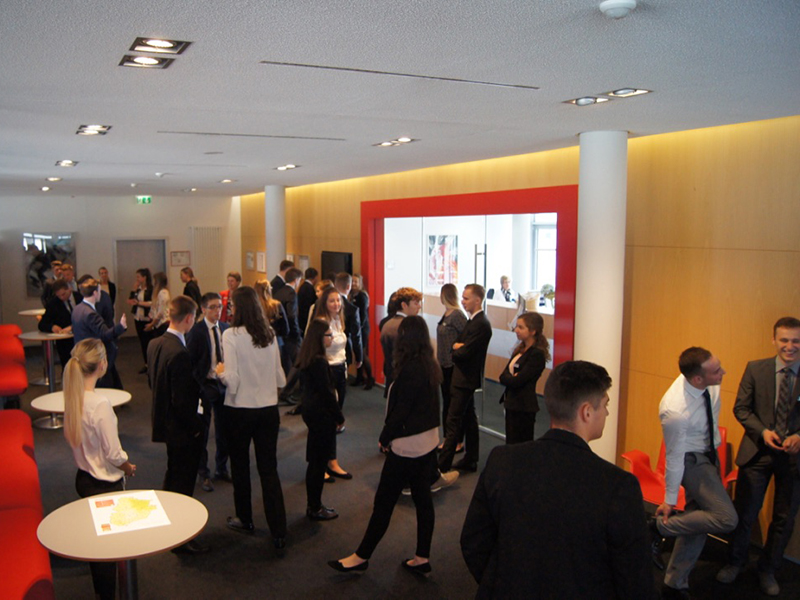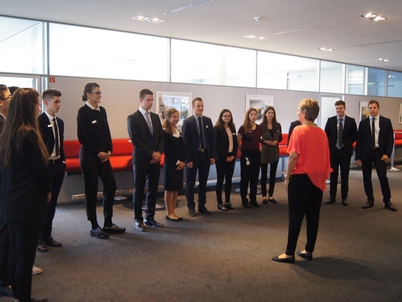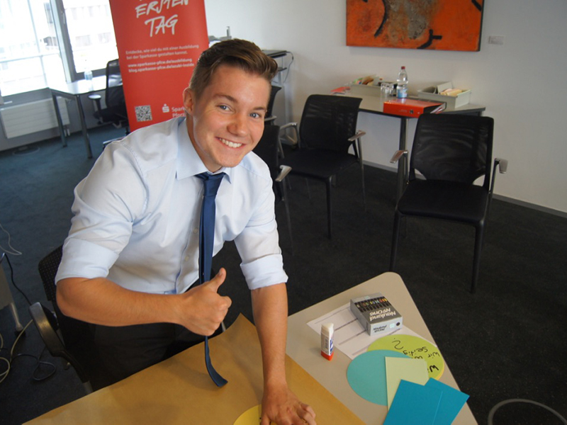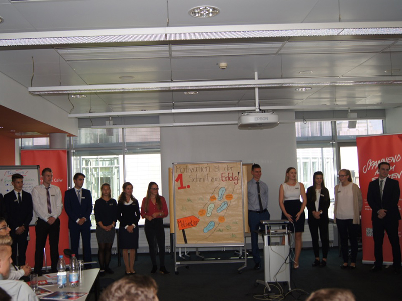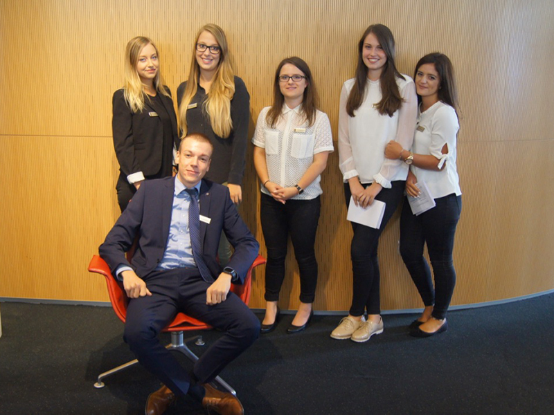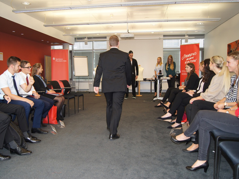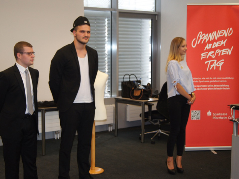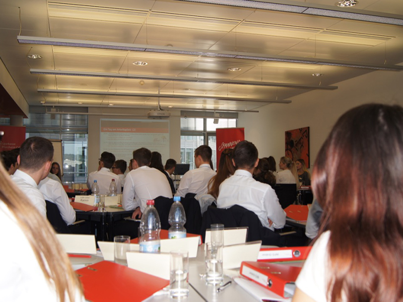 Begonnen hat der Tag mit einer Begrüßung durch das Team der Ausbildung/Personalentwicklung. Im weiteren Verlauf des Tages hatten sich neben unseren Marktvorstand Sieghardt Bucher auch weitere Kollegen und Kolleginnen angekündigt. Im Gepäck viele neue Infos über den Berufsalltag in der Sparkasse. Von „Knigge“ im Berufsleben über den Aufbau und die Stellung der Sparkasse Pforzheim Calw, sowie die große Hausführung durch Azubis des zweiten Lehrjahres war alles vertreten.