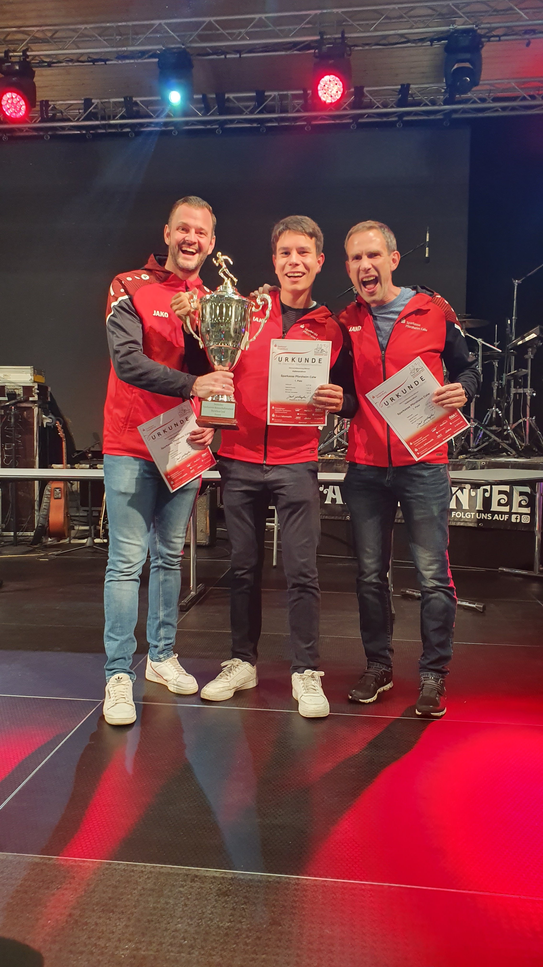 Zeit: 1:16:11 - Michael Schneider, Mario Kirn und Gabriel Endres performen in der Mannschaftswertung Halbmarathon, 1. Platz.